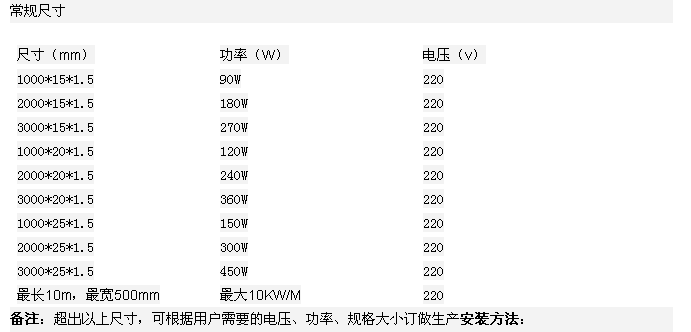產(chǎn)品介紹:硅膠薄片電熱帶,為薄片帶狀加熱產(chǎn)品(標(biāo)準(zhǔn)厚度為1.5mm),它具有很好的柔軟性,可以像繩子一樣纏繞在管道等受熱體外面用耐溫膠帶固定,亦可直接包裹在受熱體外面用彈簧掛鉤固定,如加上保溫層,加熱性能更佳。其加熱元件采用鎳鉻絲兩面包以導(dǎo)熱絕緣硅膠材料,經(jīng)高溫模壓成形,因此**性能非常可靠,注意盡量避免重疊纏繞安裝,以免影響熱傳遞,從而影響產(chǎn)品使用壽命。